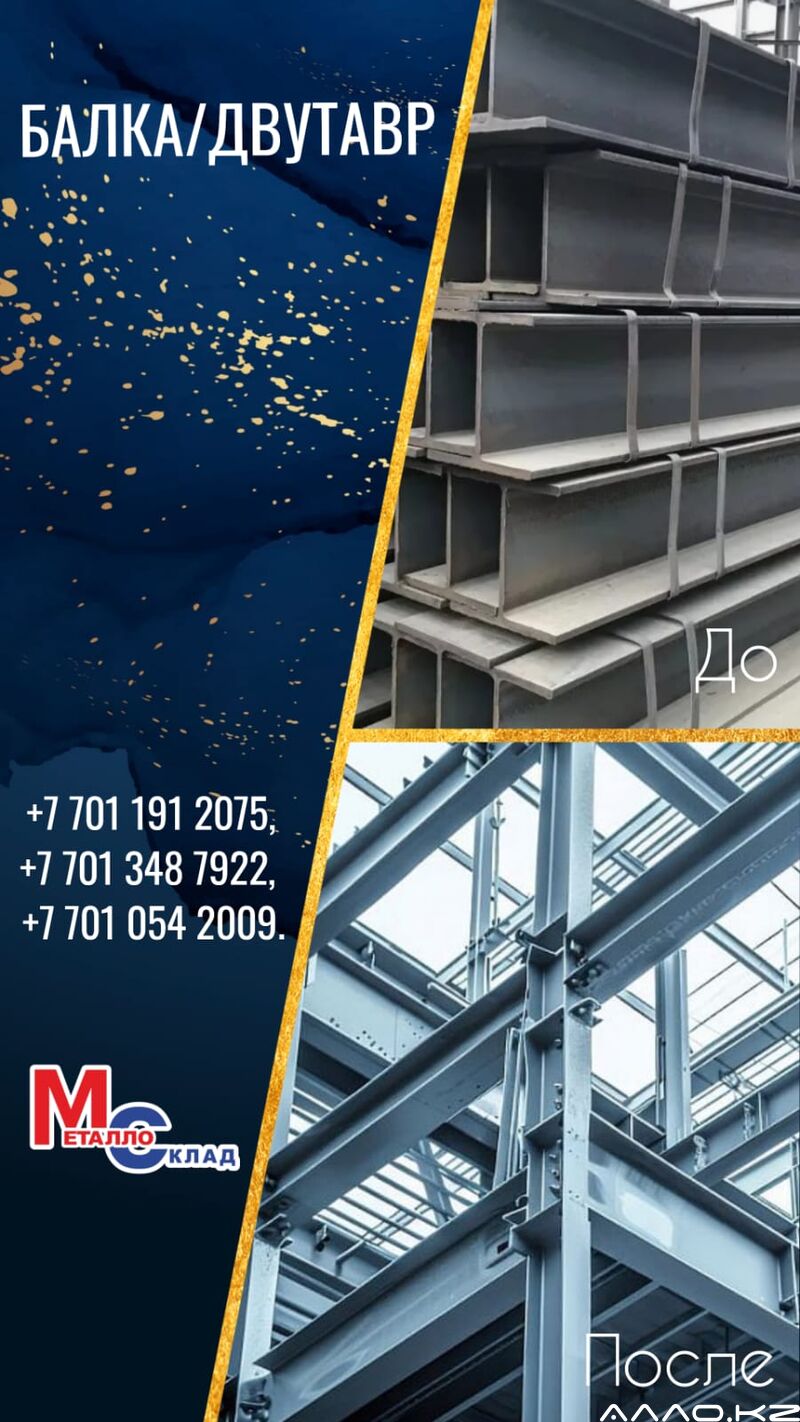 Арматура, швеллер, уголок, трубы, лист, оцинкованный рулон. Компания «Металлосклад-Т» специализируется на изготовлении, поставке металлопрокатных изделий (Казахстан и Россия) из высококачественных материалов, 20 лет являясь надежным поставщиком данной продукции и обладая штатом опытных и квалифицированных сотрудников. Благодаря непрерывному производству в Алматы, Астане, Караганде и Темиртау, мы предлагаем широкий ассортимент металлопроката (арматура, катанка тянутая в бухтах, швеллер, уголок, балка, трубы профильные, трубы круглые, лист г/к, х/к, оцинкованные, рифленые, ПВЛ, проволока ОК) по приемлемым ценам. Телефоны отдела продаж г. Алматы https://metallosklad.kz