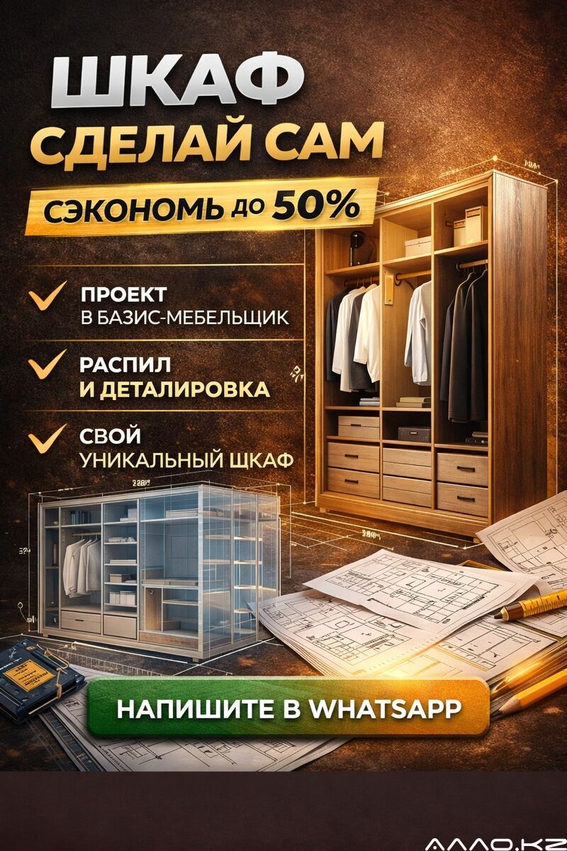 - Профессиональный проект мебели в Базис-Мебельщик для самостоятельного изготовления Я разрабатываю полноценные проекты шкафов и гардеробных в программе Базис-Мебельщик для дальнейшего качественного производства мебели. По этому проекту вы сможете заказать распил и присадку в мебельном цеху, а затем самостоятельно собрать мебель, получив заказную мебель по индивидуальным размерам без переплаты салонам. ЧТО ВХОДИТ В ПРОЕКТ? В услугу входит полный производственный пакет, а не просто картинка: — 3D-модель мебели, выполненная в Базис-Мебельщик — Полная деталировка всех элементов — Детали в точный размер для распила — Кромление (кормление) деталей — Присадка отверстий под весь крепёж и фурнитуру — Список для закупа листового материала (ЛДСП) и кромки — Бесплатная консультация по магазинам, где приобрести ЛДСП и кромку — Ведомость на изготовление МДФ деталей — Указание присадки, покрытия (плёнка / эмаль / шпон) — Учет фрезеровки МДФ фасадов ФУРНИТУРА И КОМПЛЕКТУЮЩИЕ — Ведомость на закуп крепёжной и лицевой фурнитуры — Полный список всех комплектующих для сборки — Бесплатная консультация по всем точкам продаж фурнитуры СБОРКА И ПРОИЗВОДСТВО — Подробный сборочный чертёж для самостоятельной сборки мебели — Рекомендации, где заказать распил и присадку — Рекомендации, где заказать изготовление МДФ фасадов РЕЗУЛЬТАТ ДЛЯ КЛИЕНТА В итоге вы получаете полный комплект документов, по которому можно без ошибок изготовить мебель в любом мебельном цеху и собрать её самостоятельно, сэкономив до 50% от стоимости заказной мебели. Напишите в WhatsApp +7 707 465 8884 — проконсультирую, сделаю проект и подскажу, как изготовить шкаф или гардеробную своими руками.